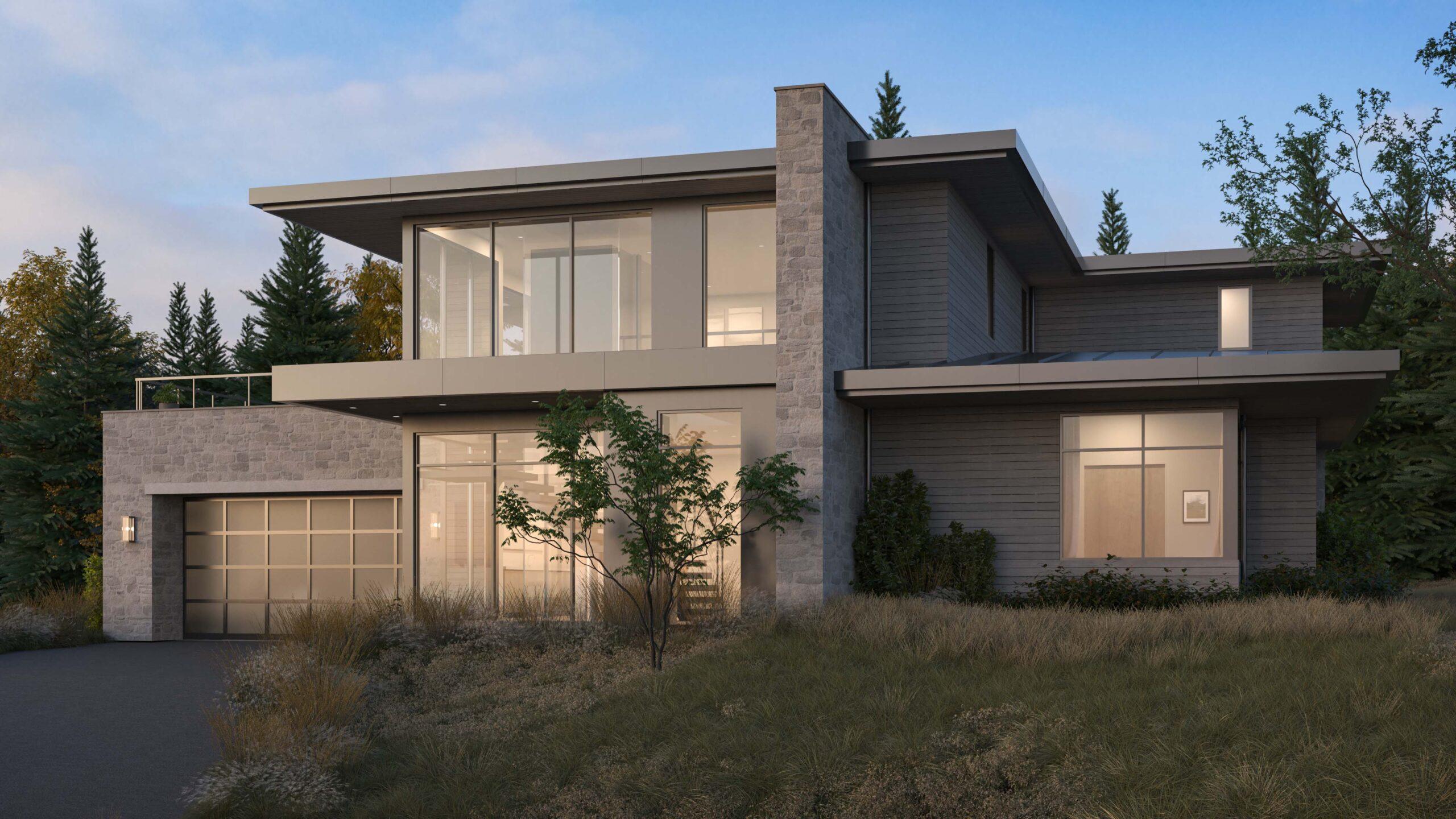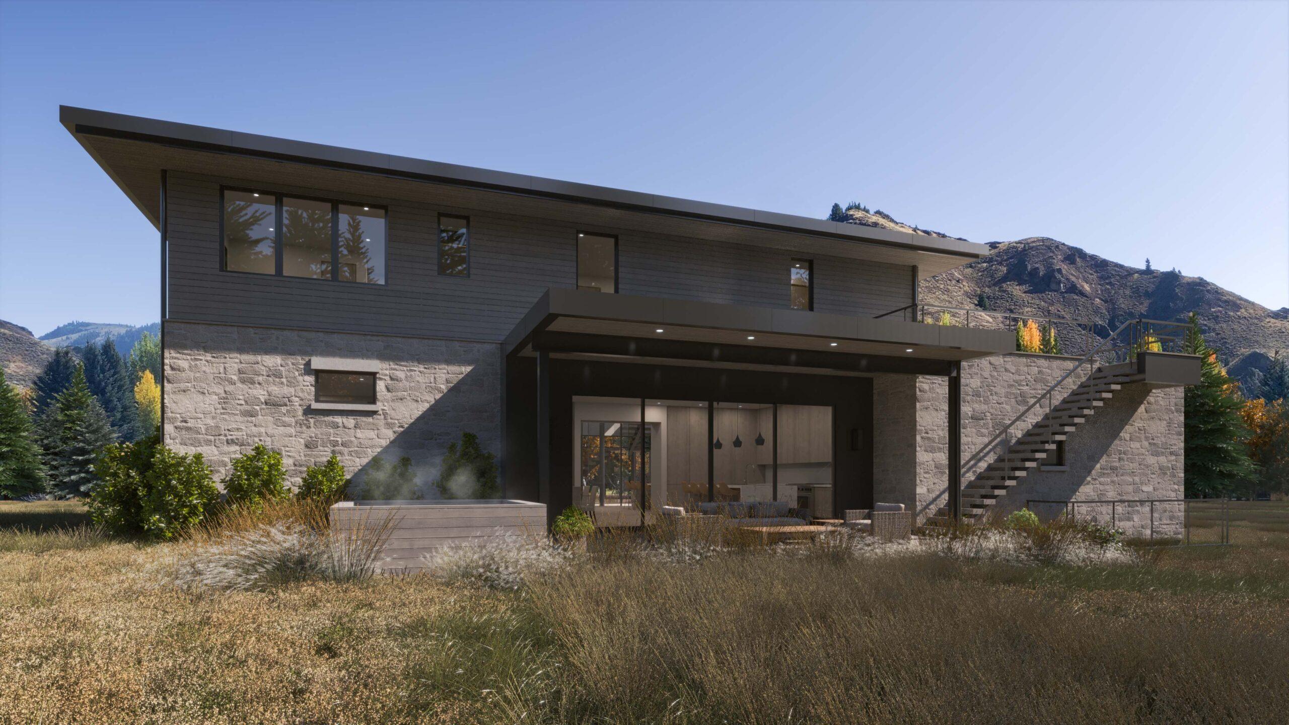 Lane Meadows is a mountain modern home located within a small community in Sun Valley, Idaho, designed as a low-maintenance second home centered on gathering and entertaining. Layers of transparency define the interior, anchored by a glass elevator and a custom cantilevered stair that traces its vertical path, allowing multiple spaces to visually connect through the home and outward to the surrounding mountains. This open circulation core creates framed views from nearly every level, reinforcing a strong connection to the landscape. Designed to host grandchildren and guests with ease, the home balances openness and simplicity, while a generous roof deck serves as a standout feature, capturing expansive mountain views and extending living space outdoors.