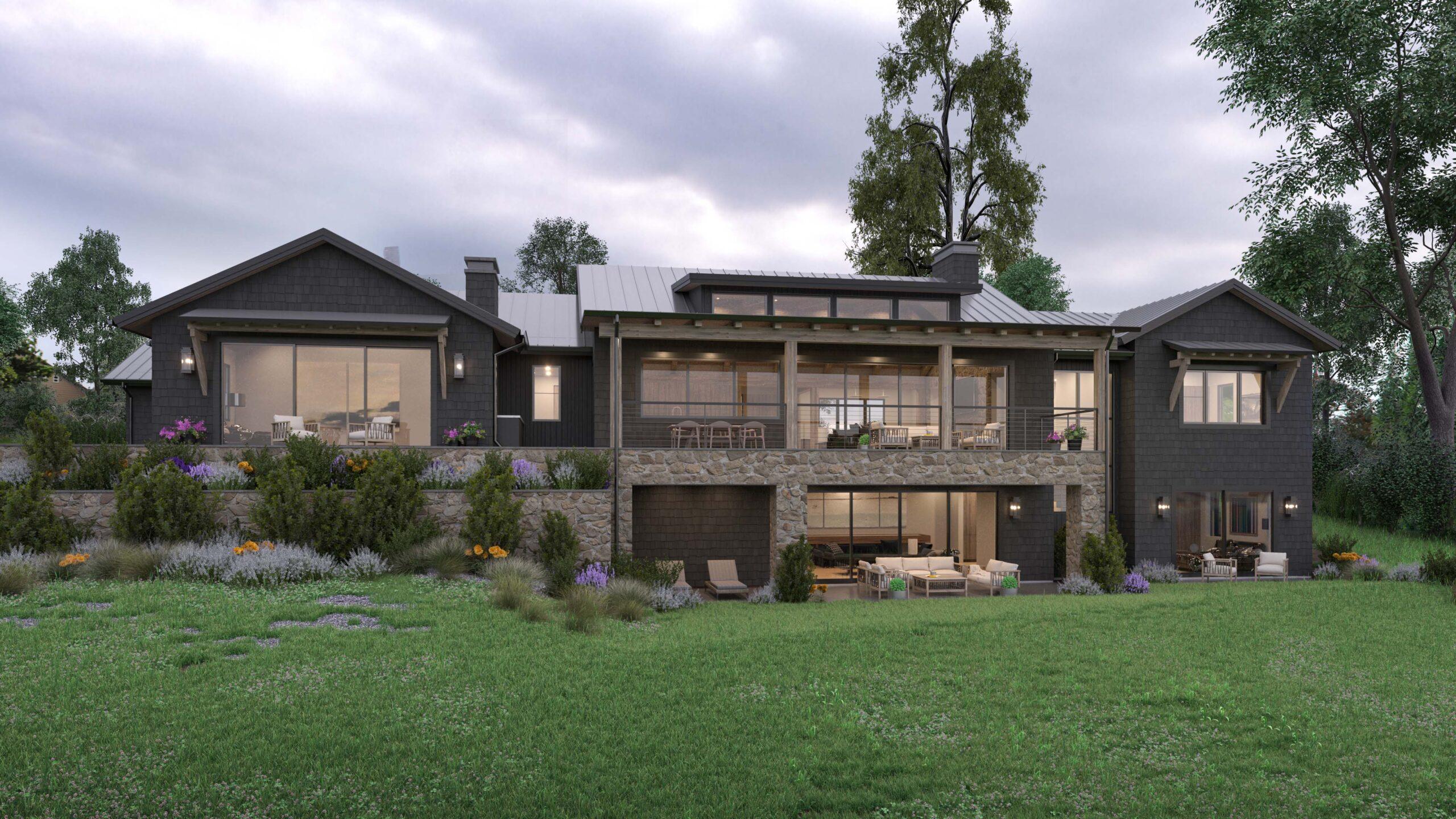 Program includes 3 bedrooms, 3.5 baths, office, formal dining room, butler’s pantry, media room, sauna and a 1,000 s.f. garage with attached 500 s.f. wood shop.